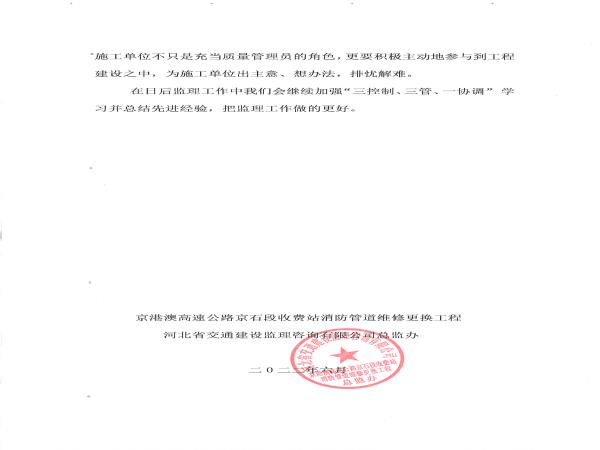 2022年京港澳高速京石段收費站消防管道維修更換工程監(jiān)理工作總結(jié)