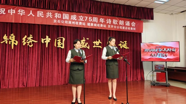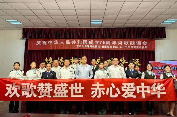 錦繡中國(guó),盛世華誕,七十五載,征程如虹。為隆重慶祝中華人民共和國(guó)成立七十五周年,延續(xù)京冀兩地高速收費(fèi)站共建深情,共同抒發(fā)熱烈的愛(ài)國(guó)情懷,9月30日上午,健康城收費(fèi)站、涿州收費(fèi)站黨支部聯(lián)合兩站分會(huì)與京開(kāi)分公司竇店收費(fèi)所,在健康城站共同開(kāi)展了慶祝中華人民共和國(guó)成立75周年詩(shī)歌朗誦會(huì)活動(dòng)。奮斗在祖國(guó)交通事業(yè)一線(xiàn)的工作者們,滿(mǎn)懷豪情,把對(duì)祖國(guó)的無(wú)盡熱愛(ài)熔鑄于一首首激情澎湃的詩(shī)篇之中,以詩(shī)的激昂韻律,歌頌祖國(guó)的壯麗騰飛。