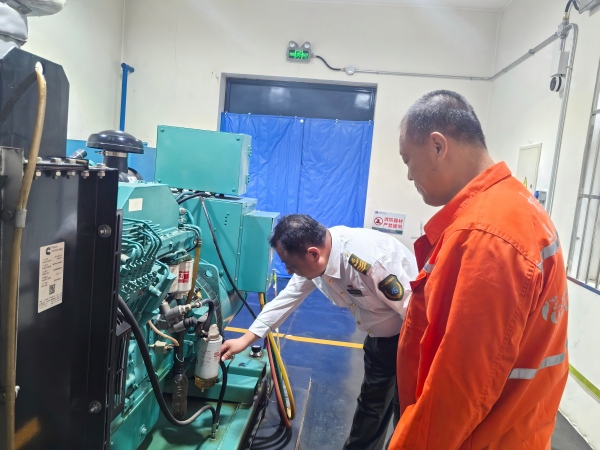 首先檢查柴油發(fā)電機(jī)房。發(fā)電機(jī)作為收費(fèi)站在突發(fā)停電情況下保障正常運(yùn)營的關(guān)鍵設(shè)備,其運(yùn)行狀況至關(guān)重要。段青松副站長和小組成員仔細(xì)檢查了發(fā)電機(jī)的狀態(tài),查看是否存漏油、漏防凍液現(xiàn)象等情況。同時對柴油儲備情況進(jìn)行了檢查,確保在節(jié)日期間有足夠的燃料供應(yīng)。此外還重點(diǎn)檢查了發(fā)電機(jī)房的通風(fēng)情況,保證良好的通風(fēng)條件。